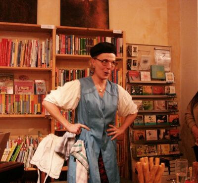 Es kamen richtig viele Interessierte (Puppenspieler, Clowns und "normale" Menschen :)) – es ging wieder mal recht eng in der Buchhandlung zu. Herr Goldammer las zwei Kapitel aus seinem Werk und gab uns offen einen Einblick in sein Arbeiten, in sein jetziges und früheres Leben. Er beantwortete ausdauernd viele Fragen, die ihm über das Buch und ihn persönlich gestellt wurden. Nach der Lesung gab es immer noch keine Pause. Er signierte unerschrocken ein Buch nach dem anderen. (Petra Pohl)