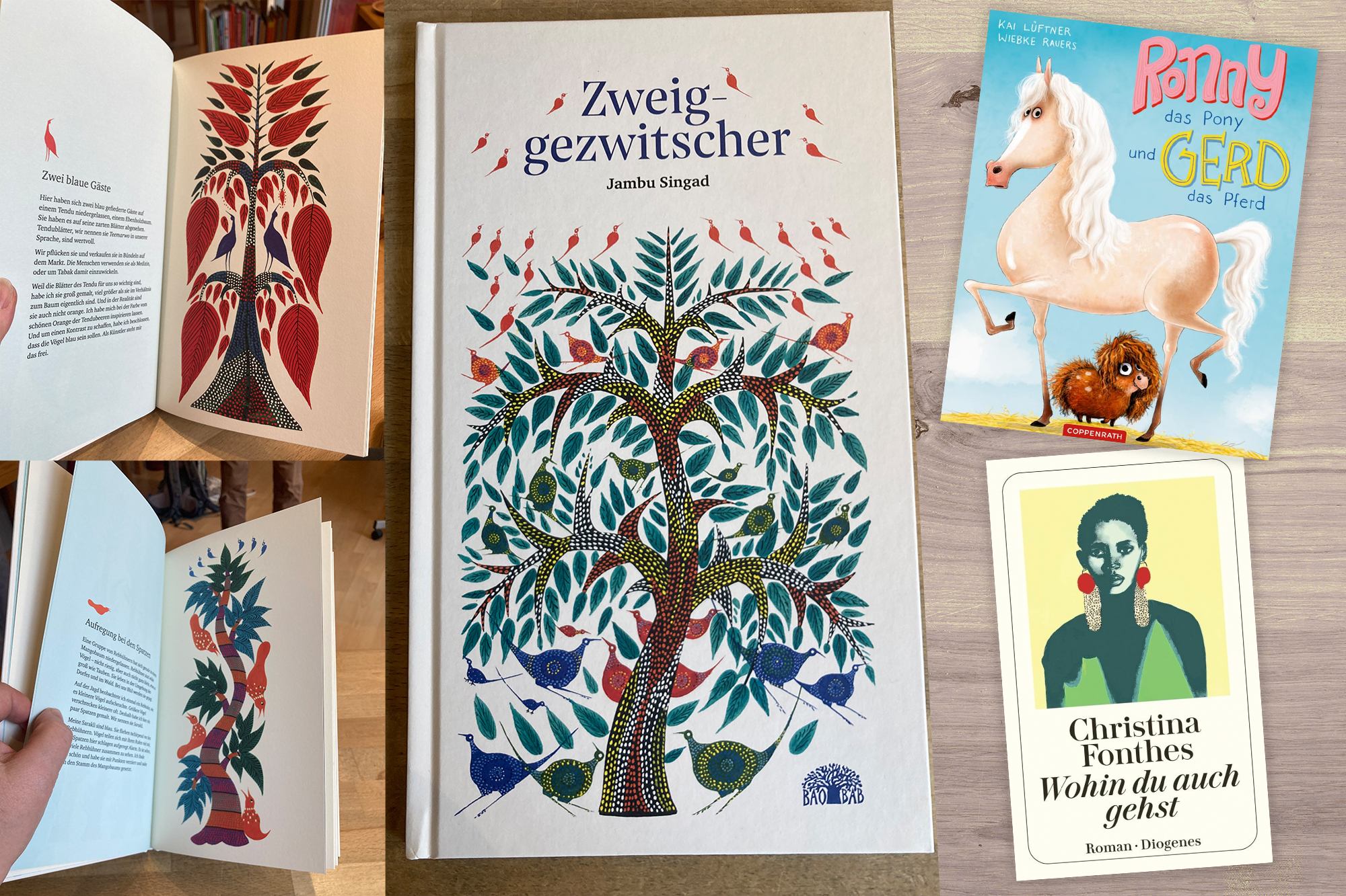 Gerade ist ganz neu bei mir ein wunderschönes ganz besonderes Buch gelandet: "Zweiggezwitscher" (24,00 Euro) Allein schon der Titel ist Musik. Ein wahrer Schatz aus dem Baobab Verlag, gestaltet von Jambu Singad aus Balwon einem Bhil Dorf in Indien. Neben den Zeichnungen sind kurze Beschreibungen der Bäume oder kleine Geschichten über deren Bewohner zu finden. Wie schön, mir geht das Herz auf!